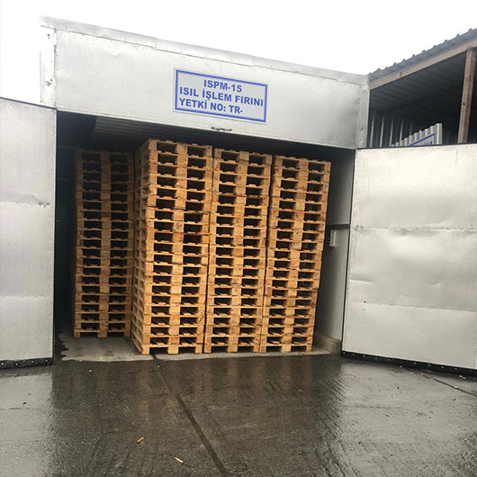 - Isıtma: Paletler, özel fırınlarda belirli bir sıcaklığa kadar ısıtılır. ISPM-15 standartlarına göre, ahşap paletler en az 56°C sıcaklıkta 30 dakika boyunca tutulmalıdır. Bu süreç, paletlerin içindeki haşere ve zararlıların tamamen yok edilmesini sağlar.